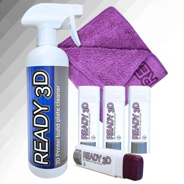 READY 3D printer build plate cleaner is formulated for use with READY 3D build plate adhesive. A machine washable 12"x12" microfiber cleaning cloth is included. READY 3D glue stick is made with high grade materials for consistent performance for you 3D printer. Gain first layer confidence with READY3D glue sticks.